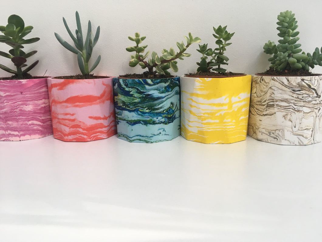 Explore a new craft and create a beautiful marbled plant pot using Jesmonite, a water-based resin material. It is solvent-free and has no VOC's making it safe to use and environmentally friendly.